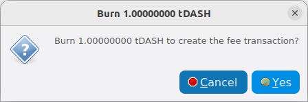 The following step will create a transaction burning 1 DASH as the proposal submission fee. This transaction is irreversible once broadcast. Verify all proposal details are correct before proceeding.