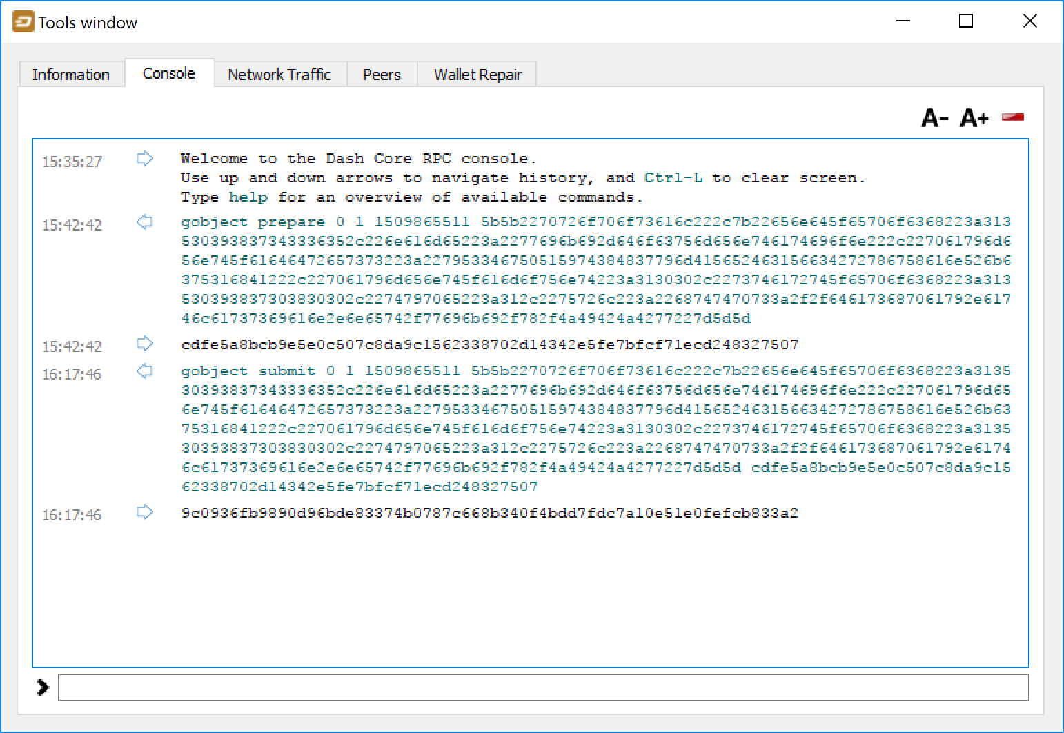 • fee-txid - the transaction ID returned by the gobject prepare command in the previous step