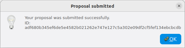 If successful, a message will be displayed with your proposal ID. Click OK to close the message.