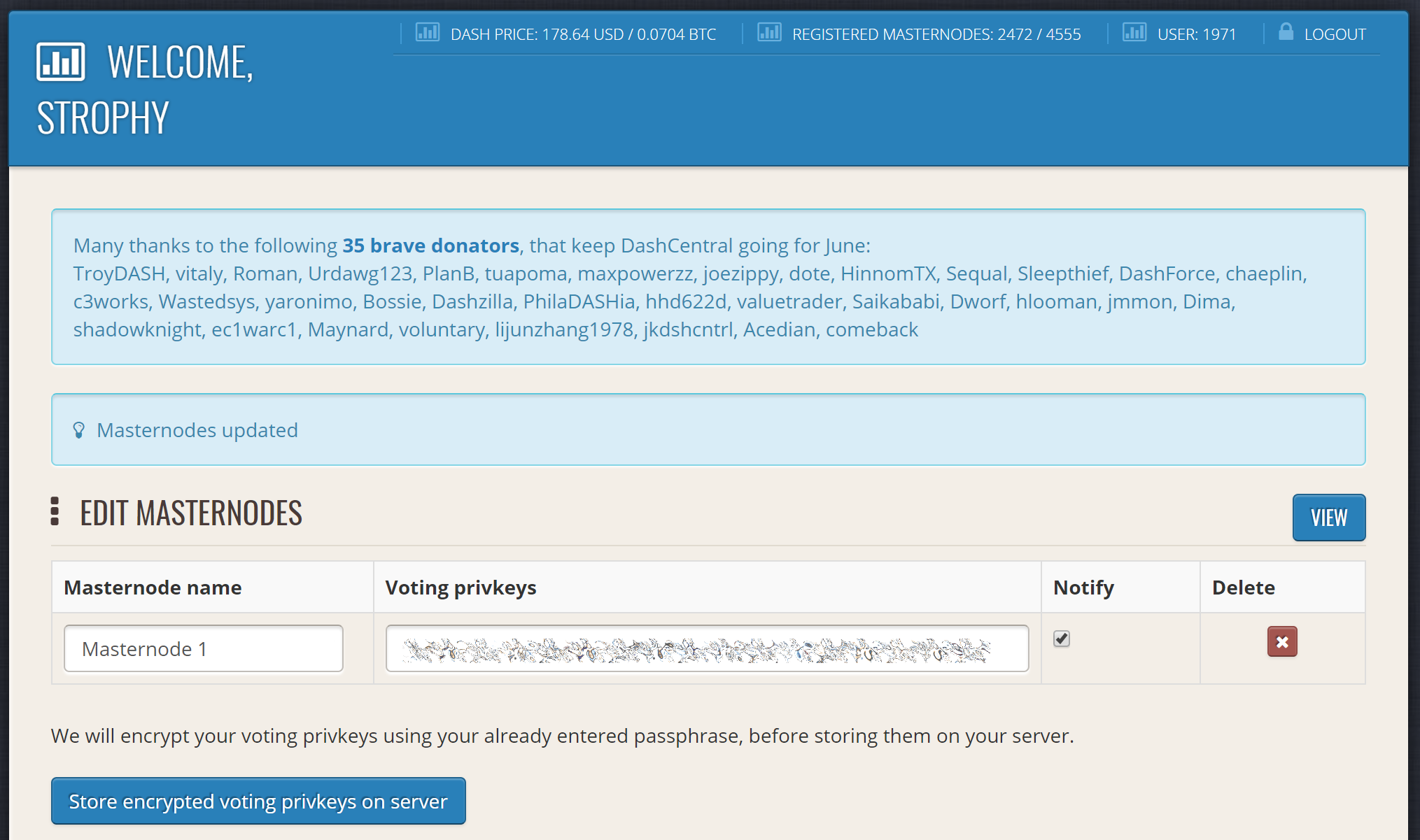 Adding voting privkeys to DashCentral#
