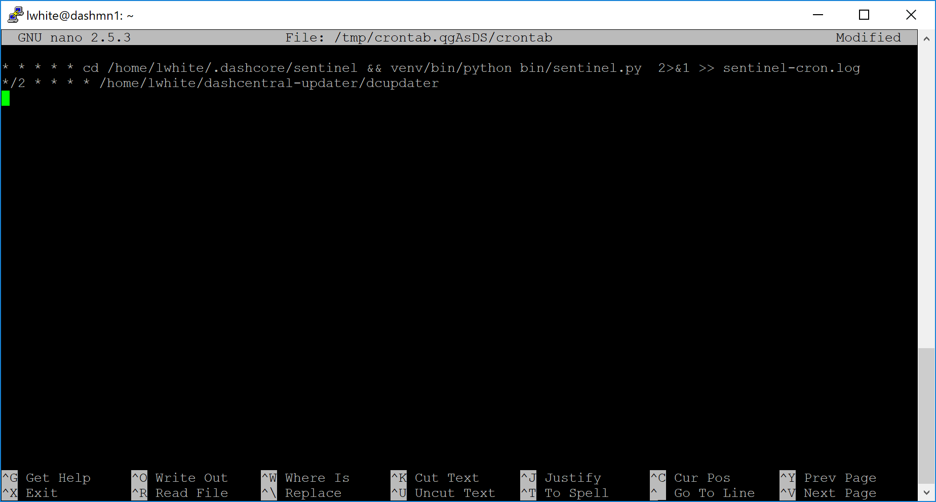 */2 * * * * /home/lwhite/dashcentral-updater/dcupdater