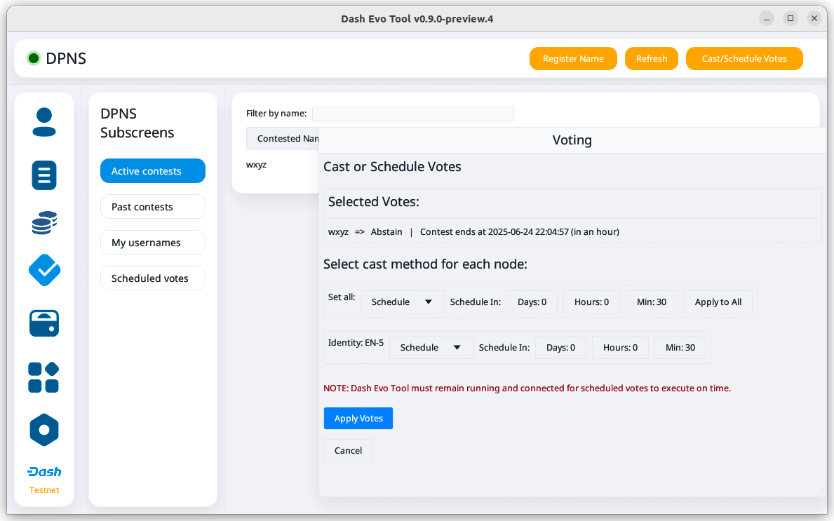 Dash Evo Tool is an application designed to help you vote on usernames, withdraw evonode credits, manage tokens, and complete an expanding list of Platform actions. This guide describes how to download, install, and use the Dash Evo Tool.